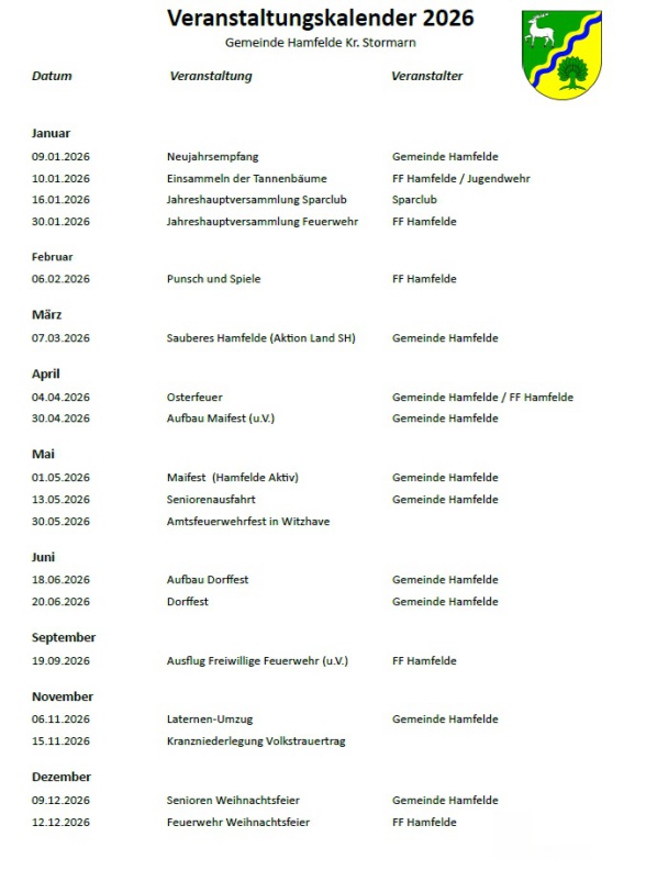Liebe Hamfelderinnen und Hamfelder,