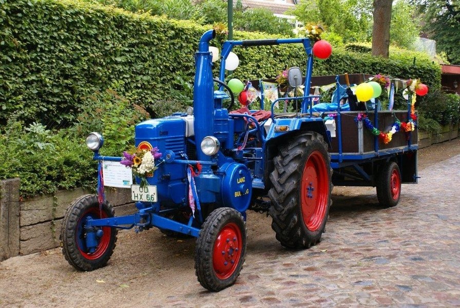 Hebbi & Heiko mit wunderschön geschmücktem Trecker wieder das Highlight am Sonntag.